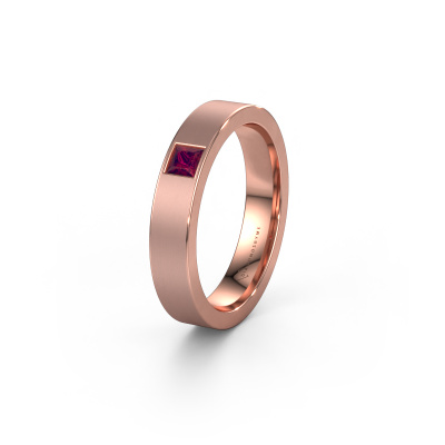 To create your ladies friendship ring in our artisan studio, we use the most modern techniques, combined with ancient craftsmanship. The end result is this modern WH0101L14BMSQ friendship ring, which is crafted to perfection by hand by our goldsmiths. A ring that fills us with pride. This rose gold WH0101L14BMSQ ladies friendship ring with flat profile has an ±0.16 in width and has a matte finish with rhodolite. Choosing a wedding ring is not done on a whim. In the end, you want a ring that completely matches your style and preferences. A reflection of your love and relationship. A ring to last a lifetime. A symbol of all that unites you. Creating your dream ring is what gets us excited. This is artfully done by hand in our own crafting studio, so we can create your ring to perfection. The most rewarding job in the world!Do you have special preferences regarding your friendship ring? For instance, a smaller or a wider band? Or perhaps a shiny or a matte ring? There are numerous variations possible. You can always discuss the possibilities with our jewellery designers. If you have certain friendship rings in mind, our designers will gladly help by drawing the rings of your dreams. Be sure to contact us!Because we design and deliver our own friendship rings, we can offer you friendship rings at a price you won't find anywhere else. A ring is made to order, which helps prevent excess supplies, so we can make you a great price offer.To make it easier for you, we offer a 30 day return policy. Check our terms and conditions.