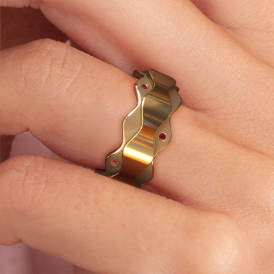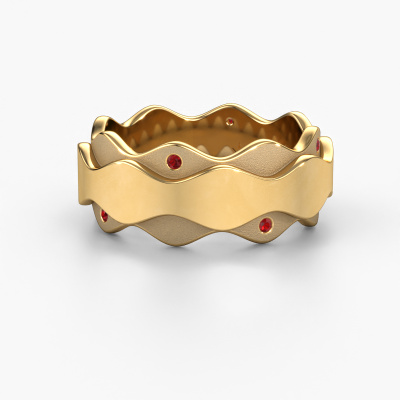 An extraordinary special ladies wedding ring! As unique as your relationship! No two people are alike and that is why you want a unique wedding ring. This unique WH2034P wedding ring is made by our jewel designers and crafted by hand by our goldsmith. In that process, We use pure craftsmanship combined with the latest techniques to achieve the best result. Our goldsmith strives for absolute perfection. A unique, handmade wedding ring, made to memorialize your big day! This unique WH2034P wedding ring is set with ruby, is ±0.28 in wide and has a mat/shiny finish. Choosing a wedding ring is not done on a whim. In the end, you want a ring that completely matches your style and preferences. A reflection of your love and relationship. A ring to last a lifetime. A symbol of all that unites you. Creating your dream ring is what gets us excited. This is artfully done by hand in our own crafting studio, so we can create your ring to perfection. The most rewarding job in the world!Do you have special preferences regarding your wedding ring? For instance, a smaller or a wider band? Or perhaps a shiny or a matte ring? There are numerous variations possible. You can always discuss the possibilities with our jewellery designers. If you have certain wedding rings in mind, our designers will gladly help by drawing the rings of your dreams. Be sure to contact us!Because we design and deliver our own wedding rings, we can offer you wedding rings at a price you won't find anywhere else. A ring is made to order, which helps prevent excess supplies, so we can make you a great price offer.To make it easier for you, we offer a 30 day return policy. Check our terms and conditions.