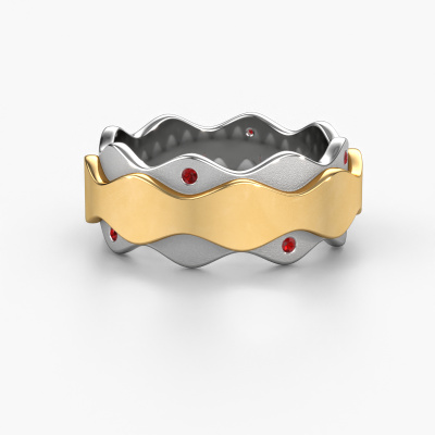 An extraordinary special ladies wedding ring! As unique as your relationship! No two people are alike and that is why you want a unique wedding ring. This unique WH2034P wedding ring is made by our jewel designers and crafted by hand by our goldsmith. In that process, We use pure craftsmanship combined with the latest techniques to achieve the best result. Our goldsmith strives for absolute perfection. A unique, handmade wedding ring, made to memorialize your big day! This unique WH2034P wedding ring is set with ruby, is ±0.28 in wide and has a mat/shiny finish. Choosing a wedding ring is not done on a whim. In the end, you want a ring that completely matches your style and preferences. A reflection of your love and relationship. A ring to last a lifetime. A symbol of all that unites you. Creating your dream ring is what gets us excited. This is artfully done by hand in our own crafting studio, so we can create your ring to perfection. The most rewarding job in the world!Do you have special preferences regarding your wedding ring? For instance, a smaller or a wider band? Or perhaps a shiny or a matte ring? There are numerous variations possible. You can always discuss the possibilities with our jewellery designers. If you have certain wedding rings in mind, our designers will gladly help by drawing the rings of your dreams. Be sure to contact us!Because we design and deliver our own wedding rings, we can offer you wedding rings at a price you won't find anywhere else. A ring is made to order, which helps prevent excess supplies, so we can make you a great price offer.To make it easier for you, we offer a 30 day return policy. Check our terms and conditions.
