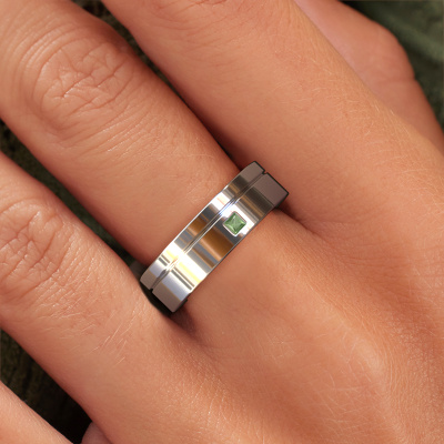 This modern ladies wedding ring is a stunning, contemporary wedding ring which truly symbolizes your unique love! Perfectly suited for men with a contemporary style. Simply customize the ring to your liking. Our goldsmith would take on any challenge of creating a perfect ring and will work on your ring, designed by you, in our own artisan studio. He will carefully and passionately create your WH0301L16APSQ wedding ring by hand whilst using the most modern techniques, combined with pure craftsmanship. And this results in a unique, contemporary ring! This modern WH0301L16APSQ wedding ring is set with princess tourmaline green, is ±0.24 in wide and has a shiny finish. Gold represents love and therefore our goldsmith loves using it in the design of your modern wedding ring. We are a proud member of the Responsible Jewellery Council. This means we only use eco-friendly gold. Something we take great pride in, obviously. It is also possible to use your own gold in the design of your wedding ring. Each jewel is made by hand in our own artisan studio so we can offer this option. This gives you the opportunity to add an extra personal touch to your ring. A ring with its own history!By the way, you can be inspired by this wedding ring and have it further adjusted to your taste. Do you prefer a smaller band or a wider one? Do you prefer a shiny ring or a matte one? Anything is possible. Also, if you have an idea of your own for extraordinary wedding rings, or if you have seen a beautiful set somewhere else that you really like and would like to have adjusted to your personal taste: no problem! don't hesitate to contact us. Our designers will gladly discuss your possibilities with you!After receiving your order, our goldsmiths will passionately start the creative process of making your wedding rings in our own artisan studio. Because we do not maintain a large stockpile, we can offer our jewellery at a lower price than other jewellers. Our pricing is proof of that! We offer top quality jewels at lowest price, guaranteed.To make it easier for you, we offer a 30 day return policy. Check our terms and conditions.