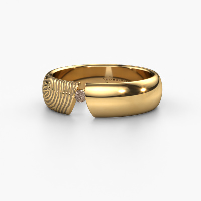 What could be more unique than a fingerprint? That makes this ladies wedding ring with brown diamond special. A personal fingerprint of your loved one, engraved tot the symbol of your everlasting love. Wouldn't it be lovely to slide this modern wedding ring around the finger of your partner on your wedding day? How does it work? First you order the wedding ring after customizing it to your liking. Once your order is placed, you send us an e-mail with the fingerprint you would like to use. For further instructions on how to make a fingerprint, check our database at the bottom of this page. This Leonila wedding ring has an ±0.22 in width. After ordering your wedding ring, our goldsmith will start creating your wedding ring immediately. Did you know we use the latest modern techniques, combined with ancient craftsmanship? This helps to create a 3D design of your jewel. You can order a dummy ring, if you please. This way you can check if the wedding ring meets your standard. Then, our goldsmith, who strives for perfection, will create your ring in our own artisan studio completely by hand. We feel passionate creating a unique ring each time. One which is finished to perfection. In the end, you get a wedding ring which matches your wishes.This wedding ring can also serve as a source of inspiration. Would you like the ring to have a matte or shiny finish (at no additional cost), or would you prefer it to be wider or narrower? Anything is possible. Because there are countless variations, we can’t show everything on our website. Do you have an idea for beautiful wedding rings, or have you seen a stunning set of wedding rings elsewhere? Feel free to contact us; our designers are ready to assist you.After receiving your order, our goldsmiths will passionately start the creative process of making your wedding rings in our own artisan studio. Because we do not maintain a large stockpile, we can offer our jewellery at a lower price than other jewellers. Our pricing is proof of that! We offer top quality jewels at lowest price, guaranteed.To make it easier for you, we offer a 30 day return policy. Check our terms and conditions.