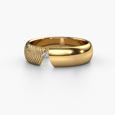 What could be more unique than a fingerprint? That makes this ladies wedding ring with diamond special. A personal fingerprint of your loved one, engraved tot the symbol of your everlasting love. Wouldn't it be lovely to slide this modern wedding ring around the finger of your partner on your wedding day? How does it work? First you order the wedding ring after customizing it to your liking. Once your order is placed, you send us an e-mail with the fingerprint you would like to use. For further instructions on how to make a fingerprint, check our database at the bottom of this page. This Leonila wedding ring has an ±0.22 in width. After ordering your wedding ring, our goldsmith will start creating your wedding ring immediately. Did you know we use the latest modern techniques, combined with ancient craftsmanship? This helps to create a 3D design of your jewel. You can order a dummy ring, if you please. This way you can check if the wedding ring meets your standard. Then, our goldsmith, who strives for perfection, will create your ring in our own artisan studio completely by hand. We feel passionate creating a unique ring each time. One which is finished to perfection. In the end, you get a wedding ring which matches your wishes.This wedding ring can also serve as a source of inspiration. Would you like the ring to have a matte or shiny finish (at no additional cost), or would you prefer it to be wider or narrower? Anything is possible. Because there are countless variations, we can’t show everything on our website. Do you have an idea for beautiful wedding rings, or have you seen a stunning set of wedding rings elsewhere? Feel free to contact us; our designers are ready to assist you.After receiving your order, our goldsmiths will passionately start the creative process of making your wedding rings in our own artisan studio. Because we do not maintain a large stockpile, we can offer our jewellery at a lower price than other jewellers. Our pricing is proof of that! We offer top quality jewels at lowest price, guaranteed.To make it easier for you, we offer a 30 day return policy. Check our terms and conditions.