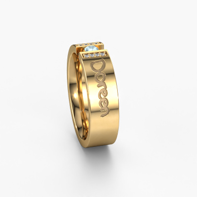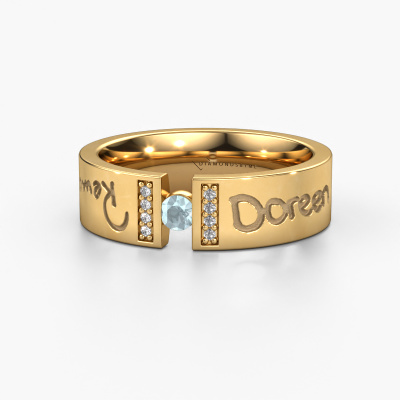 A unique wedding ring with aquamarine! What makes this ladies wedding ring WH2094L16C special, is that you can have it engraved with a special text, which has meaning to you. A word, a short phrase or part of the lyrics to a song. Whichever text is most meaningful to you. Memorialize it as an exquisite engravement on this modern wedding ring. This own Text ladies wedding ring has an ±0.24 in width. You can choose the combination of precious metals of your preference in our online tool. Anything goes! It is wise to browse through the characteristics of each different precious metal. For example, gold and silver are softer metals. Carat is determined by the amount of added extra metals. If the goldsmith doesn't add a lot, carat is higher and the wedding ring will be softer. If he adds more metals, the jewel has a lower amount of carat. A softer precious metal can still be used for your modern wedding ring! If you prefer a precious metal which will last a lifetime, we recommend platinum. This is the most solid and durable metal our goldsmith uses.This wedding ring can also serve as a source of inspiration. Would you like the ring to have a matte or shiny finish (at no additional cost), or would you prefer it to be wider or narrower? Anything is possible. Because there are countless variations, we can’t show everything on our website. Do you have an idea for beautiful wedding rings, or have you seen a stunning set of wedding rings elsewhere? Feel free to contact us; our designers are ready to assist you.By combining our modern techniques with ancient crafting, we can design and customize the finest quality jewels with the utmost care for you at the best price. Our wedding rings are always priced 30% lower than those of other jewellers. We make wedding rings to order so we don't have to maintain a large stock.To make it easier for you, we offer a 30 day return policy. Check our terms and conditions.