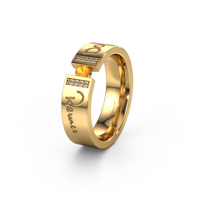 A unique wedding ring with citrin! What makes this ladies wedding ring WH2094L16C special, is that you can have it engraved with a special text, which has meaning to you. A word, a short phrase or part of the lyrics to a song. Whichever text is most meaningful to you. Memorialize it as an exquisite engravement on this modern wedding ring. This own Text ladies wedding ring has an ±0.24 in width. You can choose the combination of precious metals of your preference in our online tool. Anything goes! It is wise to browse through the characteristics of each different precious metal. For example, gold and silver are softer metals. Carat is determined by the amount of added extra metals. If the goldsmith doesn't add a lot, carat is higher and the wedding ring will be softer. If he adds more metals, the jewel has a lower amount of carat. A softer precious metal can still be used for your modern wedding ring! If you prefer a precious metal which will last a lifetime, we recommend platinum. This is the most solid and durable metal our goldsmith uses.This wedding ring can also serve as a source of inspiration. Would you like the ring to have a matte or shiny finish (at no additional cost), or would you prefer it to be wider or narrower? Anything is possible. Because there are countless variations, we can’t show everything on our website. Do you have an idea for beautiful wedding rings, or have you seen a stunning set of wedding rings elsewhere? Feel free to contact us; our designers are ready to assist you.By combining our modern techniques with ancient crafting, we can design and customize the finest quality jewels with the utmost care for you at the best price. Our wedding rings are always priced 30% lower than those of other jewellers. We make wedding rings to order so we don't have to maintain a large stock.To make it easier for you, we offer a 30 day return policy. Check our terms and conditions.