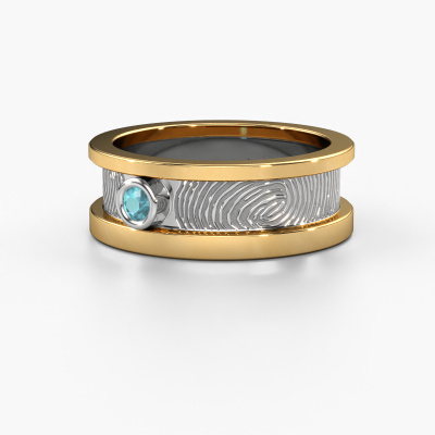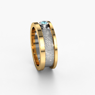What could be more unique than a fingerprint? That makes this ladies wedding ring with blue topaz special. A personal fingerprint of your loved one, engraved tot the symbol of your everlasting love. Wouldn't it be lovely to slide this fantasy wedding ring around the finger of your partner on your wedding day? How does it work? First you order the wedding ring after customizing it to your liking. Once your order is placed, you send us an e-mail with the fingerprint you would like to use. For further instructions on how to make a fingerprint, check our database at the bottom of this page. This Francisca wedding ring has an ±0.28 in width. After ordering your wedding ring, our goldsmith will start creating your wedding ring immediately. Did you know we use the latest modern techniques, combined with ancient craftsmanship? This helps to create a 3D design of your jewel. You can order a dummy ring, if you please. This way you can check if the wedding ring meets your standard. Then, our goldsmith, who strives for perfection, will create your ring in our own artisan studio completely by hand. We feel passionate creating a unique ring each time. One which is finished to perfection. In the end, you get a wedding ring which matches your wishes.By the way, you can be inspired by this wedding ring and have it further adjusted to your taste. Do you prefer a smaller band or a wider one? Do you prefer a shiny ring or a matte one? Anything is possible. Also, if you have an idea of your own for extraordinary wedding rings, or if you have seen a beautiful set somewhere else that you really like and would like to have adjusted to your personal taste: no problem! don't hesitate to contact us. Our designers will gladly discuss your possibilities with you!After receiving your order, our goldsmiths will start the creative process of making your wedding rings. We don't keep stock. This is advantageous because these costs will not be passed on to you. Therefore, our quality wedding rings are always priced 30 percent lower than those of other jewellers.To make it easier for you, we offer a 30 day return policy. Check our terms and conditions.