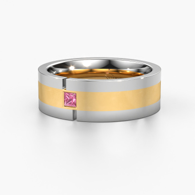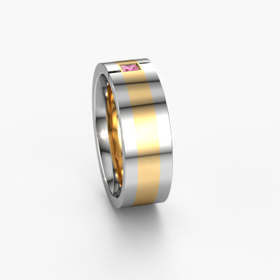 An extraordinary 2 colour ladies wedding ring! As unique as your relationship! No two people are alike and that is why you want a unique wedding ring. This exclusive WH2042P wedding ring is made by our jewel designers and crafted by hand by our goldsmith. In that process, We use pure craftsmanship combined with the latest techniques to achieve the best result. Our goldsmith strives for absolute perfection. A unique, handmade wedding ring, made to memorialize your big day! This exclusive WH2042P wedding ring is set with pink sapphire, is ±0.28 in wide and has a shiny finish. The jewel designer, member of a specialized team, will make a graphic 3D design of your wedding ring. If it pleases you, you can also order a ring dummy so you can try it on and see your ring before creation. Subsequently, our goldsmith will create your unique wedding ring with great care in our own crafting studio. A meticulous job, because both creating as well as finishing your ring requires a keen eye. And that is what makes our craft special. Your unique wedding ring is the result of true passionate craftsmanship!Do you have specific wishes? Like a shiny ring, or a matte one? A wider band, or a smaller one? The possibilities of this wedding ring are endless. Be sure to contact our designers to adjust your ring to your personal taste. Did you see a ring somewhere, or do you have some special ideas of your own? Then don't hesitate to contact our designers and discuss your ideas for your own set of beautiful wedding rings. We are up for the challenge of creating the ring exactly the way you want it!After receiving your order, our goldsmiths will start the creative process of making your wedding rings. We don't keep stock. This is advantageous because these costs will not be passed on to you. Therefore, our quality wedding rings are always priced 30 percent lower than those of other jewellers.To make it easier for you, we offer a 30 day return policy. Check our terms and conditions.
