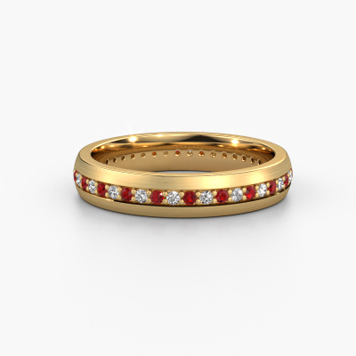 Did you know the Eternity wedding ring not only looks good, but that this wedding ring also has its own beautiful symbolical meaning? The Eternity wedding ring, with perfectly aligned smaller sized gemstones, represents your eternal love. Because the ring is pave set with gemstones, it appears to have no beginning nor end. Beautiful, wouldn't you agree? This pavé WH0103L24BM ladies wedding ring has a width of ±0.16 in and is set with ruby 1.3 mm. You can choose the combination of precious metals of your preference in our online tool. Anything goes! It is wise to browse through the characteristics of each different precious metal. For example, gold and silver are softer metals. Carat is determined by the amount of added extra metals. If the goldsmith doesn't add a lot, carat is higher and the wedding ring will be softer. If he adds more metals, the jewel has a lower amount of carat. A softer precious metal can still be used for your exclusive wedding ring! If you prefer a precious metal which will last a lifetime, we recommend platinum. This is the most solid and durable metal our goldsmith uses.This wedding ring can also serve as a source of inspiration. Would you like the ring to have a matte or shiny finish (at no additional cost), or would you prefer it to be wider or narrower? Anything is possible. Because there are countless variations, we can’t show everything on our website. Do you have an idea for beautiful wedding rings, or have you seen a stunning set of wedding rings elsewhere? Feel free to contact us; our designers are ready to assist you.After receiving your order, our goldsmiths will start the creative process of making your wedding rings in our own crafting studio. We don't keep stock. This is advantageous because these costs will not be passed on to you. Therefore, we can offer the finest quality jewellery at exceptionally low prices.To make it easier for you, we offer a 30 day return policy. Check our terms and conditions.
