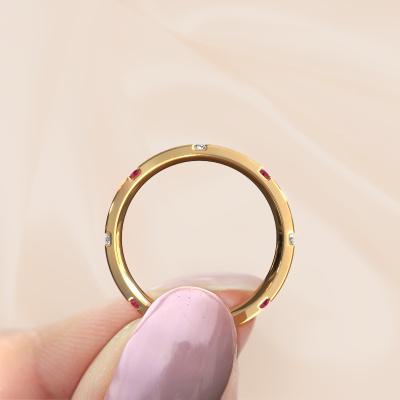 A unique ladies wedding ring, especially designed by our own jewel designers. An unusual ring that matches each style. This exclusive wedding ring WH0135L15BM is made by hand by our goldsmiths in our own crafting studio. By using a combination of the most modern techniques and ancient craftsmanship, your WH0135L15BM ring is created to perfection. This ladies wedding ring has an ±0.20 in width and has a matte finish. Here, the exclusive gold wedding ring is shown. An exquisite wedding ring, a celebration of your wedding day!After designing your ring, our jewel designer will start working on it. He will make a graphic 3D design of your wedding ring. This can also be used to make a dummy ring. Simply order a dummy ring and see for yourself how your ring will turn out. Subsequently, our expert goldsmith will create your ring in our own artisan studio. We use eco-friendly gold, so you get a ring, we are proud of, which looks good inside and out. You can also send us your own gold. Because we create your ring by hand, we can use your own gold. Our goal is to create an exquisite sparkling wedding ring just as envisioned it!Do you have special preferences regarding your wedding ring? For instance, a smaller or a wider band? Or perhaps a shiny or a matte ring? There are numerous variations possible. You can always discuss the possibilities with our jewellery designers. If you have certain wedding rings in mind, our designers will gladly help by drawing the rings of your dreams. Be sure to contact us!After receiving your order, our goldsmiths will start the creative process of making your wedding rings in our own crafting studio. We don't keep stock. This is advantageous because these costs will not be passed on to you. Therefore, we can offer the finest quality jewellery at exceptionally low prices.To make it easier for you, we offer a 30 day return policy. Check our terms and conditions.