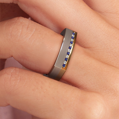 An extraordinary square ladies weddings ring! As unique as your relationship! No two people are alike and that is why you want a unique weddings ring. This unique WH2005L weddings ring is made by our jewel designers and crafted by hand by our goldsmith. In that process, We use pure craftsmanship combined with the latest techniques to achieve the best result. Our goldsmith strives for absolute perfection. A unique, handmade weddings ring, made to memorialize your big day! This unique WH2005L weddings ring is set with sapphire, is ±0.20 in wide and has a mat/shiny finish. Choosing a wedding ring is not done on a whim. In the end, you want a ring that completely matches your style and preferences. A reflection of your love and relationship. A ring to last a lifetime. A symbol of all that unites you. Creating your dream ring is what gets us excited. This is artfully done by hand in our own crafting studio, so we can create your ring to perfection. The most rewarding job in the world!Do you have specific wishes? Like a shiny ring, or a matte one? A wider band, or a smaller one? The possibilities of this weddings ring are endless. Be sure to contact our designers to adjust your ring to your personal taste. Did you see a ring somewhere, or do you have some special ideas of your own? Then don't hesitate to contact our designers and discuss your ideas for your own set of beautiful wedding rings. We are up for the challenge of creating the ring exactly the way you want it!After receiving your order, our goldsmiths will start the creative process of making your wedding rings in our own crafting studio. We don't keep stock. This is advantageous because these costs will not be passed on to you. Therefore, we can offer the finest quality jewellery at exceptionally low prices.To make it easier for you, we offer a 30 day return policy. Check our terms and conditions.