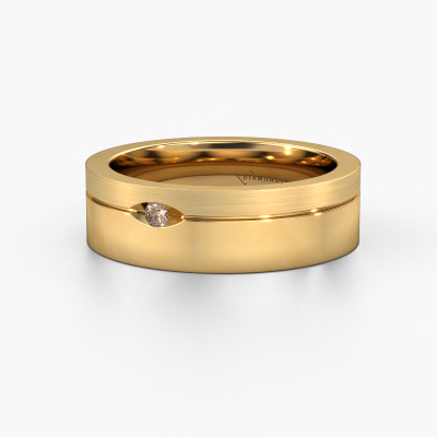 A truly stylish 14 Carat modern wedding ring! This exquisite ladies wedding ring, as shown above, is set with round brown diamond. Our goldsmiths make each gold wedding ring by hand in our own artisan studio and because of that, the brown diamonds are set with the utmost precision. This causes light to reflect evenly from every angle of the brown diamond. The width of this modern WH0329L16B wedding ring is ±0.24 in and the finish is mat/shiny. Simply customize your gemstones and colours with our online tool. Our jewel designers will make a 3D drawing of your design, so you can see the result. Our goldsmiths will subsequently make your wedding ring by hand, according ancient craftsmanship. Our goal is to make the wedding ring you have in mind. A unique wedding ring to match your style completely!This wedding ring can also serve as a source of inspiration. Would you like the ring to have a matte or shiny finish (at no additional cost), or would you prefer it to be wider or narrower? Anything is possible. Because there are countless variations, we can’t show everything on our website. Do you have an idea for beautiful wedding rings, or have you seen a stunning set of wedding rings elsewhere? Feel free to contact us; our designers are ready to assist you.Because we design and deliver our own wedding rings, we can offer you wedding rings at a price you won't find anywhere else. A ring is made to order, which helps prevent excess supplies, so we can make you a great price offer.To make it easier for you, we offer a 30 day return policy. Check our terms and conditions.