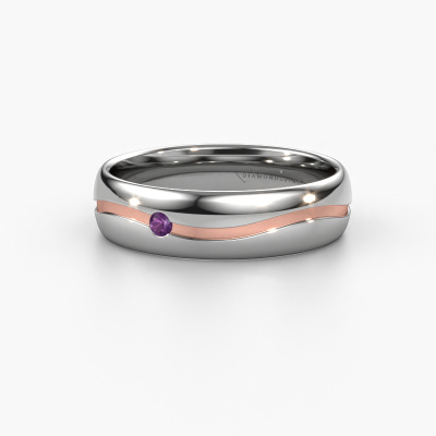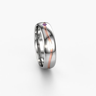 What a perfect combination of two different precious metals. They seem to reinforce each other in the modern design of this ring! Our goldsmith would be honoured to create a unique ring for you, customized to your liking. Each ladies wedding ring we offer is artfully crafted by hand in our own artisan studio. That makes it possible for us to turn modern into reality and helps create your own personal ring, customized to your style. This modern WH0905L35X ladies wedding ring is set with round amethyst, is ±0.20 in wide and has a shiny finish.