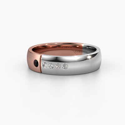 What a perfect combination of two different precious metals. They seem to reinforce each other in the modern design of this ring! Our goldsmith would be honoured to create a unique ring for you, customized to your liking. Each ladies wedding ring we offer is artfully crafted by hand in our own artisan studio. That makes it possible for us to turn modern into reality and helps create your own personal ring, customized to your style. This modern WH1101L25SAMP ladies wedding ring is set with round black diamond, is ±0.20 in wide and has a mat/shiny finish.