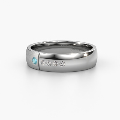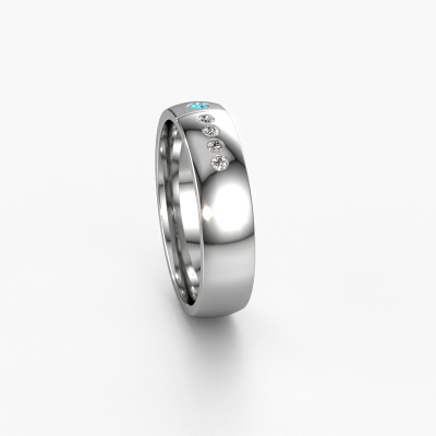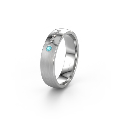 What a perfect combination of two different precious metals. They seem to reinforce each other in the modern design of this ring! Our goldsmith would be honoured to create a unique ring for you, customized to your liking. Each ladies wedding ring we offer is artfully crafted by hand in our own artisan studio. That makes it possible for us to turn modern into reality and helps create your own personal ring, customized to your style. This modern WH1101L25SAMP ladies wedding ring is set with round blue topaz, is ±0.20 in wide and has a mat/shiny finish.