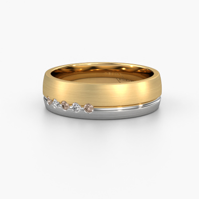 What a perfect combination of two different precious metals. They seem to reinforce each other in the traditional design of this ring! Our goldsmith would be honoured to create a unique ring for you, customized to your liking. Each ladies wedding ring we offer is artfully crafted by hand in our own artisan studio. That makes it possible for us to turn traditional into reality and helps create your own personal ring, customized to your style. This traditional WH0323L25AM ladies wedding ring is set with round brown diamond, is ±0.24 in wide and has a matte finish. Simply customize your gemstones and colours with our online tool. Our jewel designers will make a 3D drawing of your design, so you can see the result. Our goldsmiths will subsequently make your wedding ring by hand, according ancient craftsmanship. Our goal is to make the wedding ring you have in mind. A unique wedding ring to match your style completely!Do you have specific wishes regarding your wedding ring, but are you having difficulties finding the design on our website? The be sure to contact our designers! For instance, we can make the band smaller or wider. Do you prefer a matte finish? We can do that! Engravings are a great way of personalizing your rings, and applicable on most designs. Or, if you have an idea of your own for your extraordinary wedding rings, contact us! Our designers are up for the challenge of designing the ring of your dreams!By combining our modern techniques with ancient crafting, we can design and customize the finest quality jewels with the utmost care for you at the best price. Our wedding rings are always priced 30% lower than those of other jewellers. We make wedding rings to order so we don't have to maintain a large stock.To make it easier for you, we offer a 30 day return policy. Check our terms and conditions.