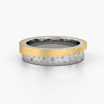 A unique ladies wedding ring, especially designed by our own jewel designers. An unusual ring that matches each style. This fantasy wedding ring WH6016L15E is made by hand by our goldsmiths in our own crafting studio. By using a combination of the most modern techniques and ancient craftsmanship, your WH6016L15E ring is created to perfection. This ladies wedding ring has an ±0.20 in width and has a shiny finish. Here, the fantasy white gold wedding ring is shown in the combination white gold with gold. An exquisite wedding ring, a celebration of your wedding day!Gold represents love and therefore our goldsmith loves using it in the design of your fantasy wedding ring. We are a proud member of the Responsible Jewellery Council. This means we only use eco-friendly gold. Something we take great pride in, obviously. It is also possible to use your own gold in the design of your wedding ring. Each jewel is made by hand in our own artisan studio so we can offer this option. This gives you the opportunity to add an extra personal touch to your ring. A ring with its own history!Do you have specific wishes? Like a shiny ring, or a matte one? A wider band, or a smaller one? The possibilities of this wedding ring are endless. Be sure to contact our designers to adjust your ring to your personal taste. Did you see a ring somewhere, or do you have some special ideas of your own? Then don't hesitate to contact our designers and discuss your ideas for your own set of beautiful wedding rings. We are up for the challenge of creating the ring exactly the way you want it!By combining our modern techniques with ancient crafting, we can design and customize the finest quality jewels with the utmost care for you at the best price. Our wedding rings are always priced 30% lower than those of other jewellers. We make wedding rings to order so we don't have to maintain a large stock.To make it easier for you, we offer a 30 day return policy. Check our terms and conditions.