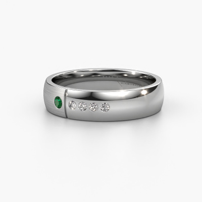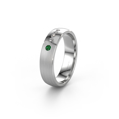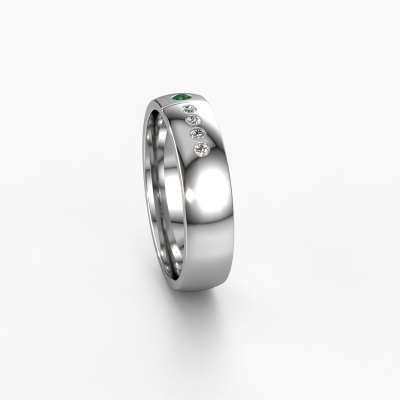 What a perfect combination of two different precious metals. They seem to reinforce each other in the modern design of this ring! Our goldsmith would be honoured to create a unique ring for you, customized to your liking. Each ladies wedding ring we offer is artfully crafted by hand in our own artisan studio. That makes it possible for us to turn modern into reality and helps create your own personal ring, customized to your style. This modern WH1101L25SAMP ladies wedding ring is set with round emerald, is ±0.20 in wide and has a mat/shiny finish.