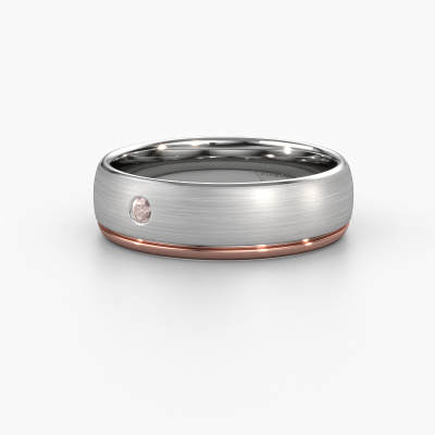 What a perfect combination of two different precious metals. They seem to reinforce each other in the modern design of this ring! Our goldsmith would be honoured to create a unique ring for you, customized to your liking. Each ladies wedding ring we offer is artfully crafted by hand in our own artisan studio. That makes it possible for us to turn modern into reality and helps create your own personal ring, customized to your style. This modern WH0501L36AM ladies wedding ring is set with round morganite champagne, is ±0.24 in wide and has a matte finish.