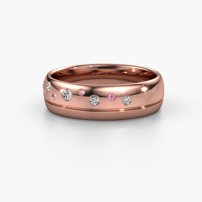 A unique ladies wedding ring, especially designed by our own jewel designers. An unusual ring that matches each style. This fantasy wedding ring WH0317L36AP is made by hand by our goldsmiths in our own crafting studio. By using a combination of the most modern techniques and ancient craftsmanship, your WH0317L36AP ring is created to perfection. This ladies wedding ring has an ±0.24 in width and has a shiny finish. Here, the fantasy rose gold wedding ring is shown in the combination rose gold with rose gold. An exquisite wedding ring, a celebration of your wedding day!You can choose the combination of precious metals of your preference in our online tool. Anything goes! It is wise to browse through the characteristics of each different precious metal. For example, gold and silver are softer metals. Carat is determined by the amount of added extra metals. If the goldsmith doesn't add a lot, carat is higher and the wedding ring will be softer. If he adds more metals, the jewel has a lower amount of carat. A softer precious metal can still be used for your fantasy wedding ring! If you prefer a precious metal which will last a lifetime, we recommend platinum. This is the most solid and durable metal our goldsmith uses.Be inspired by our designs, and adjust this wedding ring to your own personal taste: wider or smaller, shiny or matte? No problem! Even if you have ideas of your own for special wedding rings, our jewellery designers are lined up to help you design the ring of your dreams. don't hesitate to contact us!After receiving your order, our goldsmiths will start the creative process of making your wedding rings. We don't keep stock. This is advantageous because these costs will not be passed on to you. Therefore, our quality wedding rings are always priced 30 percent lower than those of other jewellers.To make it easier for you, we offer a 30 day return policy. Check our terms and conditions.