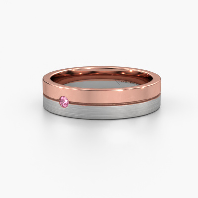 What a perfect combination of two different precious metals. They seem to reinforce each other in the modern design of this ring! Our goldsmith would be honoured to create a unique ring for you, customized to your liking. Each ladies wedding ring we offer is artfully crafted by hand in our own artisan studio. That makes it possible for us to turn modern into reality and helps create your own personal ring, customized to your style. This modern WH0201L15APM ladies wedding ring is set with round pink sapphire, is ±0.20 in wide and has a mat/shiny finish. After ordering your wedding ring, our goldsmith will start creating your wedding ring immediately. Did you know we use the latest modern techniques, combined with ancient craftsmanship? This helps to create a 3D design of your jewel. You can order a dummy ring, if you please. This way you can check if the wedding ring meets your standard. Then, our goldsmith, who strives for perfection, will create your ring in our own artisan studio completely by hand. We feel passionate creating a unique ring each time. One which is finished to perfection. In the end, you get a wedding ring which matches your wishes.Do you have specific wishes? Like a shiny ring, or a matte one? A wider band, or a smaller one? The possibilities of this wedding ring are endless. Be sure to contact our designers to adjust your ring to your personal taste. Did you see a ring somewhere, or do you have some special ideas of your own? Then don't hesitate to contact our designers and discuss your ideas for your own set of beautiful wedding rings. We are up for the challenge of creating the ring exactly the way you want it!After receiving your order, our goldsmiths will start the creative process of making your wedding rings in our own crafting studio. We don't keep stock. This is advantageous because these costs will not be passed on to you. Therefore, we can offer the finest quality jewellery at exceptionally low prices.To make it easier for you, we offer a 30 day return policy. Check our terms and conditions.