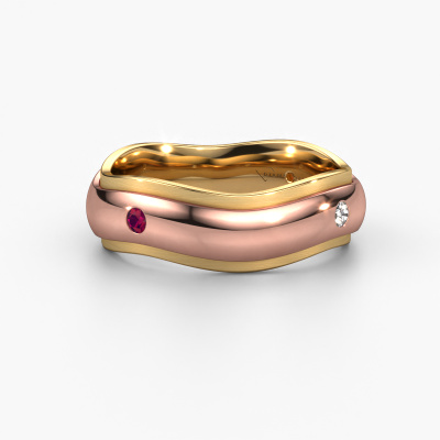 What a perfect combination of two different precious metals. They seem to reinforce each other in the unique design of this ring! Our goldsmith would be honoured to create a unique ring for you, customized to your liking. Each ladies wedding ring we offer is artfully crafted by hand in our own artisan studio. That makes it possible for us to turn unique into reality and helps create your own personal ring, customized to your style. This unique WH2050L26DP ladies wedding ring is set with round rhodolite, is ±0.24 in wide and has a shiny finish. After designing your ring, our jewel designer will start working on it. He will make a graphic 3D design of your wedding ring. This can also be used to make a dummy ring. Simply order a dummy ring and see for yourself how your ring will turn out. Subsequently, our expert goldsmith will create your ring in our own artisan studio. We use eco-friendly gold, so you get a ring, we are proud of, which looks good inside and out. You can also send us your own gold. Because we create your ring by hand, we can use your own gold. Our goal is to create an exquisite sparkling wedding ring just as envisioned it!Do you have specific wishes regarding your wedding ring, but are you having difficulties finding the design on our website? The be sure to contact our designers! For instance, we can make the band smaller or wider. Do you prefer a matte finish? We can do that! Engravings are a great way of personalizing your rings, and applicable on most designs. Or, if you have an idea of your own for your extraordinary wedding rings, contact us! Our designers are up for the challenge of designing the ring of your dreams!After receiving your order, our goldsmiths will start the creative process of making your wedding rings. We don't keep stock. This is advantageous because these costs will not be passed on to you. Therefore, our quality wedding rings are always priced 30 percent lower than those of other jewellers.To make it easier for you, we offer a 30 day return policy. Check our terms and conditions.