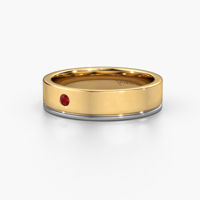 What a perfect combination of two different precious metals. They seem to reinforce each other in the modern design of this ring! Our goldsmith would be honoured to create a unique ring for you, customized to your liking. Each ladies wedding ring we offer is artfully crafted by hand in our own artisan studio. That makes it possible for us to turn modern into reality and helps create your own personal ring, customized to your style. This modern WH0501L15AP ladies wedding ring is set with round ruby, is ±0.20 in wide and has a shiny finish. The jewel designer, member of a specialized team, will make a graphic 3D design of your wedding ring. If it pleases you, you can also order a ring dummy so you can try it on and see your ring before creation. Subsequently, our goldsmith will create your unique wedding ring with great care in our own crafting studio. A meticulous job, because both creating as well as finishing your ring requires a keen eye. And that is what makes our craft special. Your unique wedding ring is the result of true passionate craftsmanship!Do you have special preferences regarding your wedding ring? For instance, a smaller or a wider band? Or perhaps a shiny or a matte ring? There are numerous variations possible. You can always discuss the possibilities with our jewellery designers. If you have certain wedding rings in mind, our designers will gladly help by drawing the rings of your dreams. Be sure to contact us!Because we design and deliver our own wedding rings, we can offer you wedding rings at a price you won't find anywhere else. A ring is made to order, which helps prevent excess supplies, so we can make you a great price offer.To make it easier for you, we offer a 30 day return policy. Check our terms and conditions.