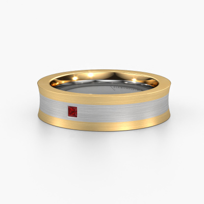 What a perfect combination of two different precious metals. They seem to reinforce each other in the fashionable design of this ring! Our goldsmith would be honoured to create a unique ring for you, customized to your liking. Each ladies wedding ring we offer is artfully crafted by hand in our own artisan studio. That makes it possible for us to turn fashionable into reality and helps create your own personal ring, customized to your style. This fashionable WH2238L2 ladies wedding ring is set with princess ruby, is ±0.24 in wide and has a matte finish. You can choose the combination of precious metals of your preference in our online tool. Anything goes! It is wise to browse through the characteristics of each different precious metal. For example, gold and silver are softer metals. Carat is determined by the amount of added extra metals. If the goldsmith doesn't add a lot, carat is higher and the wedding ring will be softer. If he adds more metals, the jewel has a lower amount of carat. A softer precious metal can still be used for your fashionable wedding ring! If you prefer a precious metal which will last a lifetime, we recommend platinum. This is the most solid and durable metal our goldsmith uses.Be inspired by our designs, and adjust this wedding ring to your own personal taste: wider or smaller, shiny or matte? No problem! Even if you have ideas of your own for special wedding rings, our jewellery designers are lined up to help you design the ring of your dreams. don't hesitate to contact us!Because we design and deliver our own wedding rings, we can offer you wedding rings at a price you won't find anywhere else. A ring is made to order, which helps prevent excess supplies, so we can make you a great price offer.To make it easier for you, we offer a 30 day return policy. Check our terms and conditions.