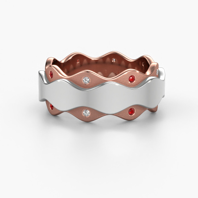 A unique ladies wedding ring, especially designed by our own jewel designers. An unusual ring that matches each style. This fantasy wedding ring WH2033L is made by hand by our goldsmiths in our own crafting studio. By using a combination of the most modern techniques and ancient craftsmanship, your WH2033L ring is created to perfection. This ladies wedding ring has an ±0.28 in width and has a mat/shiny finish. Here, the fantasy rose gold wedding ring is shown in the combination rose gold with white gold. An exquisite wedding ring, a celebration of your wedding day!Choosing a wedding ring is not done on a whim. In the end, you want a ring that completely matches your style and preferences. A reflection of your love and relationship. A ring to last a lifetime. A symbol of all that unites you. Creating your dream ring is what gets us excited. This is artfully done by hand in our own crafting studio, so we can create your ring to perfection. The most rewarding job in the world!Do you have specific wishes regarding your wedding ring, but are you having difficulties finding the design on our website? The be sure to contact our designers! For instance, we can make the band smaller or wider. Do you prefer a matte finish? We can do that! Engravings are a great way of personalizing your rings, and applicable on most designs. Or, if you have an idea of your own for your extraordinary wedding rings, contact us! Our designers are up for the challenge of designing the ring of your dreams!After receiving your order, our goldsmiths will start the creative process of making your wedding rings. We don't keep stock. This is advantageous because these costs will not be passed on to you. Therefore, our quality wedding rings are always priced 30 percent lower than those of other jewellers.To make it easier for you, we offer a 30 day return policy. Check our terms and conditions.