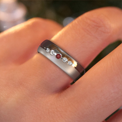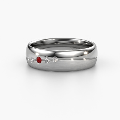 What a perfect combination of two different precious metals. They seem to reinforce each other in the luxury design of this ring! Our goldsmith would be honoured to create a unique ring for you, customized to your liking. Each ladies wedding ring we offer is artfully crafted by hand in our own artisan studio. That makes it possible for us to turn luxury into reality and helps create your own personal ring, customized to your style. This luxury WH0925L36APM ladies wedding ring is set with round ruby, is ±0.24 in wide and has a mat/shiny finish. You can choose the combination of precious metals of your preference in our online tool. Anything goes! It is wise to browse through the characteristics of each different precious metal. For example, gold and silver are softer metals. Carat is determined by the amount of added extra metals. If the goldsmith doesn't add a lot, carat is higher and the wedding ring will be softer. If he adds more metals, the jewel has a lower amount of carat. A softer precious metal can still be used for your luxury wedding ring! If you prefer a precious metal which will last a lifetime, we recommend platinum. This is the most solid and durable metal our goldsmith uses.This wedding ring can also serve as a source of inspiration. Would you like the ring to have a matte or shiny finish (at no additional cost), or would you prefer it to be wider or narrower? Anything is possible. Because there are countless variations, we can’t show everything on our website. Do you have an idea for beautiful wedding rings, or have you seen a stunning set of wedding rings elsewhere? Feel free to contact us; our designers are ready to assist you.Because we design and deliver our own wedding rings, we can offer you wedding rings at a price you won't find anywhere else. A ring is made to order, which helps prevent excess supplies, so we can make you a great price offer.To make it easier for you, we offer a 30 day return policy. Check our terms and conditions.