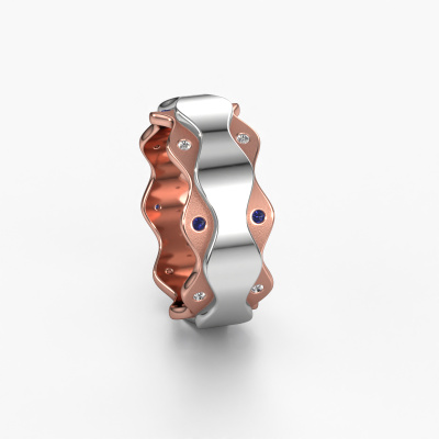 A unique ladies wedding ring, especially designed by our own jewel designers. An unusual ring that matches each style. This fantasy wedding ring WH2033L is made by hand by our goldsmiths in our own crafting studio. By using a combination of the most modern techniques and ancient craftsmanship, your WH2033L ring is created to perfection. This ladies wedding ring has an ±0.28 in width and has a mat/shiny finish. Here, the fantasy rose gold wedding ring is shown in the combination rose gold with white gold. An exquisite wedding ring, a celebration of your wedding day!Choosing a wedding ring is not done on a whim. In the end, you want a ring that completely matches your style and preferences. A reflection of your love and relationship. A ring to last a lifetime. A symbol of all that unites you. Creating your dream ring is what gets us excited. This is artfully done by hand in our own crafting studio, so we can create your ring to perfection. The most rewarding job in the world!Do you have specific wishes regarding your wedding ring, but are you having difficulties finding the design on our website? The be sure to contact our designers! For instance, we can make the band smaller or wider. Do you prefer a matte finish? We can do that! Engravings are a great way of personalizing your rings, and applicable on most designs. Or, if you have an idea of your own for your extraordinary wedding rings, contact us! Our designers are up for the challenge of designing the ring of your dreams!After receiving your order, our goldsmiths will start the creative process of making your wedding rings. We don't keep stock. This is advantageous because these costs will not be passed on to you. Therefore, our quality wedding rings are always priced 30 percent lower than those of other jewellers.To make it easier for you, we offer a 30 day return policy. Check our terms and conditions.