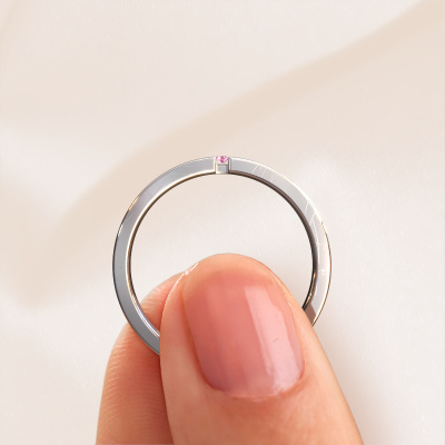 An extraordinary affordable platinum ladies wedding ring! The combination of the three different precious metals represents your unique love. Isn't that wonderful? Our goldsmith will create your ring in our own crafting studio. With a unique combination of pure craftsmanship of goldsmiths and the most modern techniques, we are able to customize your modern three tone wedding ring to perfection. This 3 colour WH0402L14AM wedding ring set with round pink sapphire is ±0.16 in wide and has a matte finish. Choosing a wedding ring is not done on a whim. In the end, you want a ring that completely matches your style and preferences. A reflection of your love and relationship. A ring to last a lifetime. A symbol of all that unites you. Creating your dream ring is what gets us excited. This is artfully done by hand in our own crafting studio, so we can create your ring to perfection. The most rewarding job in the world!Do you have specific wishes regarding your wedding ring, but are you having difficulties finding the design on our website? The be sure to contact our designers! For instance, we can make the band smaller or wider. Do you prefer a matte finish? We can do that! Engravings are a great way of personalizing your rings, and applicable on most designs. Or, if you have an idea of your own for your extraordinary wedding rings, contact us! Our designers are up for the challenge of designing the ring of your dreams!By combining our modern techniques with ancient crafting, we can design and customize the finest quality jewels with the utmost care for you at the best price. Our wedding rings are always priced 30% lower than those of other jewellers. We make wedding rings to order so we don't have to maintain a large stock.To make it easier for you, we offer a 30 day return policy. Check our terms and conditions.