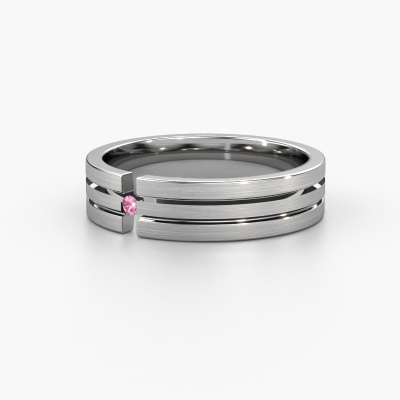 An extraordinary flat platinum ladies wedding ring! The combination of the three different precious metals represents your unique love. Isn't that wonderful? Our goldsmith will create your ring in our own crafting studio. With a unique combination of pure craftsmanship of goldsmiths and the most modern techniques, we are able to customize your modern three tone wedding ring to perfection. This 3 colour WH0402L15AM wedding ring set with round pink sapphire is ±0.20 in wide and has a matte finish. Simply customize your gemstones and colours with our online tool. Our jewel designers will make a 3D drawing of your design, so you can see the result. Our goldsmiths will subsequently make your wedding ring by hand, according ancient craftsmanship. Our goal is to make the wedding ring you have in mind. A unique wedding ring to match your style completely!This wedding ring can also serve as a source of inspiration. Would you like the ring to have a matte or shiny finish (at no additional cost), or would you prefer it to be wider or narrower? Anything is possible. Because there are countless variations, we can’t show everything on our website. Do you have an idea for beautiful wedding rings, or have you seen a stunning set of wedding rings elsewhere? Feel free to contact us; our designers are ready to assist you.Because we design our wedding rings ourselves, and deliver it directly to you, we can offer you wedding rings at a price you won't find anywhere else. Our rings are made to order, which helps prevent excess supplies, so we can make you a great price offer.To make it easier for you, we offer a 30 day return policy. Check our terms and conditions.