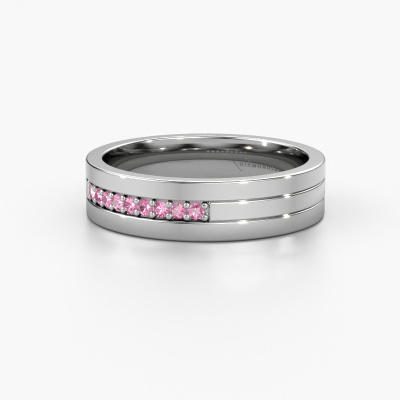 An extraordinary memoire platinum ladies wedding ring! The combination of the three different precious metals represents your unique love. Isn't that wonderful? Our goldsmith will create your ring in our own crafting studio. With a unique combination of pure craftsmanship of goldsmiths and the most modern techniques, we are able to customize your modern three tone wedding ring to perfection. This 3 colour WH0413L15AP wedding ring set with round pink sapphire is ±0.20 in wide and has a shiny finish. Simply customize your gemstones and colours with our online tool. Our jewel designers will make a 3D drawing of your design, so you can see the result. Our goldsmiths will subsequently make your wedding ring by hand, according ancient craftsmanship. Our goal is to make the wedding ring you have in mind. A unique wedding ring to match your style completely!Do you have special preferences regarding your wedding ring? For instance, a smaller or a wider band? Or perhaps a shiny or a matte ring? There are numerous variations possible. You can always discuss the possibilities with our jewellery designers. If you have certain wedding rings in mind, our designers will gladly help by drawing the rings of your dreams. Be sure to contact us!By combining our modern techniques with ancient crafting, we can design and customize the finest quality jewels with the utmost care for you at the best price. Our wedding rings are always priced 30% lower than those of other jewellers. We make wedding rings to order so we don't have to maintain a large stock.To make it easier for you, we offer a 30 day return policy. Check our terms and conditions.