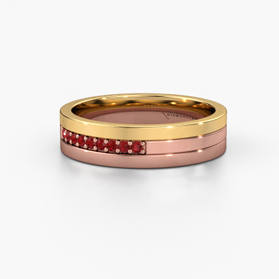 An extraordinary memoire rose gold ladies wedding ring! The combination of the three different precious metals represents your unique love. Isn't that wonderful? Our goldsmith will create your ring in our own crafting studio. With a unique combination of pure craftsmanship of goldsmiths and the most modern techniques, we are able to customize your modern three tone wedding ring to perfection. This 3 colour WH0413L15AP wedding ring set with round ruby is ±0.20 in wide and has a shiny finish. Simply customize your gemstones and colours with our online tool. Our jewel designers will make a 3D drawing of your design, so you can see the result. Our goldsmiths will subsequently make your wedding ring by hand, according ancient craftsmanship. Our goal is to make the wedding ring you have in mind. A unique wedding ring to match your style completely!Do you have special preferences regarding your wedding ring? For instance, a smaller or a wider band? Or perhaps a shiny or a matte ring? There are numerous variations possible. You can always discuss the possibilities with our jewellery designers. If you have certain wedding rings in mind, our designers will gladly help by drawing the rings of your dreams. Be sure to contact us!By combining our modern techniques with ancient crafting, we can design and customize the finest quality jewels with the utmost care for you at the best price. Our wedding rings are always priced 30% lower than those of other jewellers. We make wedding rings to order so we don't have to maintain a large stock.To make it easier for you, we offer a 30 day return policy. Check our terms and conditions.