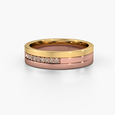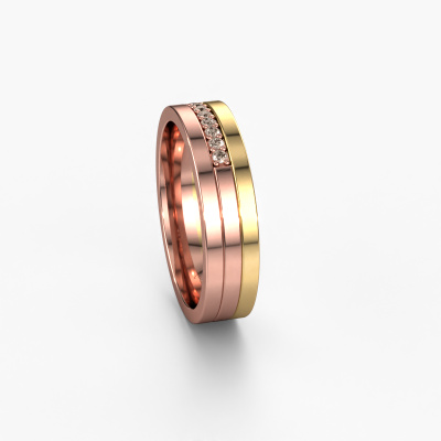 An extraordinary memoire rose gold ladies wedding ring! The combination of the three different precious metals represents your unique love. Isn't that wonderful? Our goldsmith will create your ring in our own crafting studio. With a unique combination of pure craftsmanship of goldsmiths and the most modern techniques, we are able to customize your modern three tone wedding ring to perfection. This 3 colour WH0413L15AP wedding ring set with round brown diamond is ±0.20 in wide and has a shiny finish. Simply customize your gemstones and colours with our online tool. Our jewel designers will make a 3D drawing of your design, so you can see the result. Our goldsmiths will subsequently make your wedding ring by hand, according ancient craftsmanship. Our goal is to make the wedding ring you have in mind. A unique wedding ring to match your style completely!Do you have special preferences regarding your wedding ring? For instance, a smaller or a wider band? Or perhaps a shiny or a matte ring? There are numerous variations possible. You can always discuss the possibilities with our jewellery designers. If you have certain wedding rings in mind, our designers will gladly help by drawing the rings of your dreams. Be sure to contact us!By combining our modern techniques with ancient crafting, we can design and customize the finest quality jewels with the utmost care for you at the best price. Our wedding rings are always priced 30% lower than those of other jewellers. We make wedding rings to order so we don't have to maintain a large stock.To make it easier for you, we offer a 30 day return policy. Check our terms and conditions.
