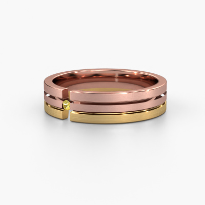 An extraordinary flat rose gold ladies wedding ring! The combination of the three different precious metals represents your unique love. Isn't that wonderful? Our goldsmith will create your ring in our own crafting studio. With a unique combination of pure craftsmanship of goldsmiths and the most modern techniques, we are able to customize your modern three tone wedding ring to perfection. This 3 colour WH0402L15AM wedding ring set with round yellow sapphire is ±0.20 in wide and has a matte finish. Simply customize your gemstones and colours with our online tool. Our jewel designers will make a 3D drawing of your design, so you can see the result. Our goldsmiths will subsequently make your wedding ring by hand, according ancient craftsmanship. Our goal is to make the wedding ring you have in mind. A unique wedding ring to match your style completely!This wedding ring can also serve as a source of inspiration. Would you like the ring to have a matte or shiny finish (at no additional cost), or would you prefer it to be wider or narrower? Anything is possible. Because there are countless variations, we can’t show everything on our website. Do you have an idea for beautiful wedding rings, or have you seen a stunning set of wedding rings elsewhere? Feel free to contact us; our designers are ready to assist you.Because we design our wedding rings ourselves, and deliver it directly to you, we can offer you wedding rings at a price you won't find anywhere else. Our rings are made to order, which helps prevent excess supplies, so we can make you a great price offer.To make it easier for you, we offer a 30 day return policy. Check our terms and conditions.