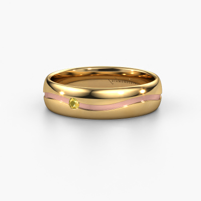 What a perfect combination of two different precious metals. They seem to reinforce each other in the modern design of this ring! Our goldsmith would be honoured to create a unique ring for you, customized to your liking. Each ladies wedding ring we offer is artfully crafted by hand in our own artisan studio. That makes it possible for us to turn modern into reality and helps create your own personal ring, customized to your style. This modern WH0905L35X ladies wedding ring is set with round yellow sapphire, is ±0.20 in wide and has a shiny finish.