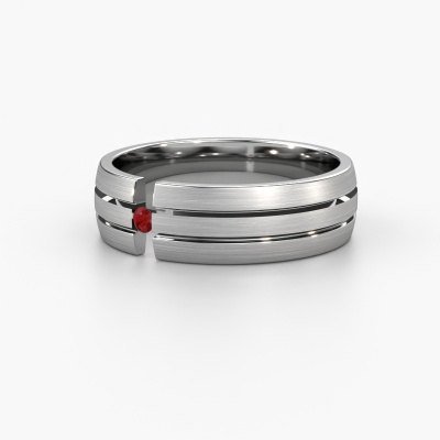 A truly stylish modern wedding ring! This exquisite ladies wedding ring, as shown above, is set with round ruby. Our goldsmiths make each platinum wedding ring by hand in our own artisan studio and because of that, the ruby are set with the utmost precision. This causes light to reflect evenly from every angle of the ruby. The width of this modern WH0402L26AM wedding ring is ±0.24 in and the finish is mat. Choosing a wedding ring is not done on a whim. In the end, you want a ring that completely matches your style and preferences. A reflection of your love and relationship. A ring to last a lifetime. A symbol of all that unites you. Creating your dream ring is what gets us excited. This is artfully done by hand in our own crafting studio, so we can create your ring to perfection. The most rewarding job in the world!By the way, you can be inspired by this wedding ring and have it further adjusted to your taste. Do you prefer a smaller band or a wider one? Do you prefer a shiny ring or a matte one? Anything is possible. Also, if you have an idea of your own for extraordinary wedding rings, or if you have seen a beautiful set somewhere else that you really like and would like to have adjusted to your personal taste: no problem! don't hesitate to contact us. Our designers will gladly discuss your possibilities with you!After receiving your order, our goldsmiths will start the creative process of making your wedding rings. We don't keep stock. This is advantageous because these costs will not be passed on to you. Therefore, our quality wedding rings are always priced 30 percent lower than those of other jewellers.To make it easier for you, we offer a 30 day return policy. Check our terms and conditions.