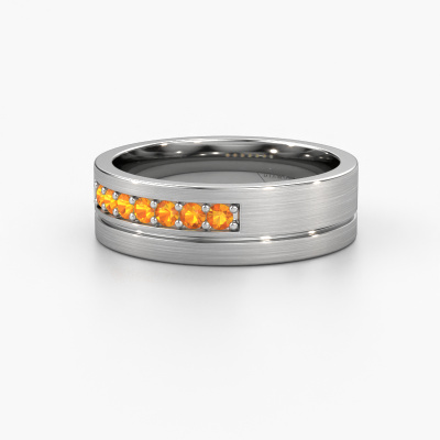 A truly stylish traditional wedding ring! This exquisite ladies wedding ring, as shown above, is set with round citrin. Our goldsmiths make each platinum wedding ring by hand in our own artisan studio and because of that, the citrin are set with the utmost precision. This causes light to reflect evenly from every angle of the citrin. The width of this traditional WH0312L16AM wedding ring is ±0.24 in and the finish is mat. After ordering your wedding ring, our goldsmith will start creating your wedding ring immediately. Did you know we use the latest modern techniques, combined with ancient craftsmanship? This helps to create a 3D design of your jewel. You can order a dummy ring, if you please. This way you can check if the wedding ring meets your standard. Then, our goldsmith, who strives for perfection, will create your ring in our own artisan studio completely by hand. We feel passionate creating a unique ring each time. One which is finished to perfection. In the end, you get a wedding ring which matches your wishes.By the way, you can be inspired by this wedding ring and have it further adjusted to your taste. Do you prefer a smaller band or a wider one? Do you prefer a shiny ring or a matte one? Anything is possible. Also, if you have an idea of your own for extraordinary wedding rings, or if you have seen a beautiful set somewhere else that you really like and would like to have adjusted to your personal taste: no problem! don't hesitate to contact us. Our designers will gladly discuss your possibilities with you!After receiving your order, our goldsmiths will start the creative process of making your wedding rings. We don't keep stock. This is advantageous because these costs will not be passed on to you. Therefore, our quality wedding rings are always priced 30 percent lower than those of other jewellers.To make it easier for you, we offer a 30 day return policy. Check our terms and conditions.