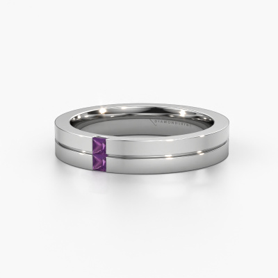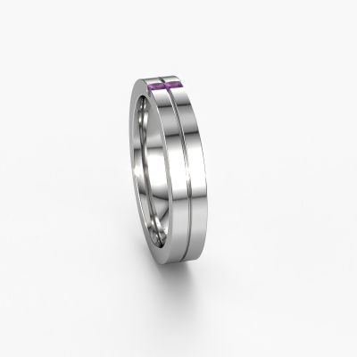 To create your ladies wedding ring in our artisan studio, we use the most modern techniques, combined with ancient craftsmanship. The end result is this modern WH0225L14B wedding ring, which is crafted to perfection by hand by our goldsmiths. A ring that fills us with pride. This white gold WH0225L14B ladies wedding ring with flat profile has an ±0.16 in width and has a shiny finish with amethyst. You can choose the combination of precious metals of your preference in our online tool. Anything goes! It is wise to browse through the characteristics of each different precious metal. For example, gold and silver are softer metals. Carat is determined by the amount of added extra metals. If the goldsmith doesn't add a lot, carat is higher and the wedding ring will be softer. If he adds more metals, the jewel has a lower amount of carat. A softer precious metal can still be used for your modern wedding ring! If you prefer a precious metal which will last a lifetime, we recommend platinum. This is the most solid and durable metal our goldsmith uses.Do you have specific wishes? Like a shiny ring, or a matte one? A wider band, or a smaller one? The possibilities of this wedding ring are endless. Be sure to contact our designers to adjust your ring to your personal taste. Did you see a ring somewhere, or do you have some special ideas of your own? Then don't hesitate to contact our designers and discuss your ideas for your own set of beautiful wedding rings. We are up for the challenge of creating the ring exactly the way you want it!By combining our modern techniques with ancient crafting, we can design and customize the finest quality jewels with the utmost care for you at the best price. Our wedding rings are always priced 30% lower than those of other jewellers. We make wedding rings to order so we don't have to maintain a large stock.To make it easier for you, we offer a 30 day return policy. Check our terms and conditions.