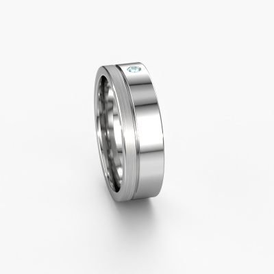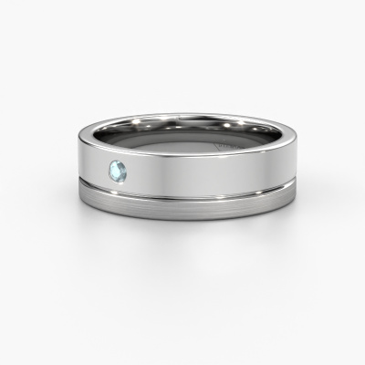 This modern mat/shiny ladies wedding ring with flat profile is an extraordinary ring to memorialize your love. A timeless wedding ring set with carefully selected aquamarine. In this example, the white gold WH0301L16APM wedding ring is set with round aquamarine 2 mm. Our goldsmiths use the latest modern techniques, combined with ancient craftsmanship and they will make your ring in our own artisan studio. Resulting in a unique, handmade ±0.24x0.07 in wedding ring, which was created to perfection, and matches your style flawlessly.