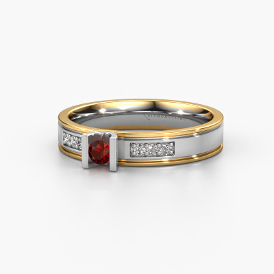 This modern ladies wedding ring is a stunning, contemporary wedding ring which truly symbolizes your unique love! Perfectly suited for men with a contemporary style. Simply customize the ring to your liking. Our goldsmith would take on any challenge of creating a perfect ring and will work on your ring, designed by you, in our own artisan studio. He will carefully and passionately create your WH2108L14A wedding ring by hand whilst using the most modern techniques, combined with pure craftsmanship. And this results in a unique, contemporary ring! This modern WH2108L14A wedding ring is set with round garnet, is ±0.16 in wide and has a shiny finish. You can choose the combination of precious metals of your preference in our online tool. Anything goes! It is wise to browse through the characteristics of each different precious metal. For example, gold and silver are softer metals. Carat is determined by the amount of added extra metals. If the goldsmith doesn't add a lot, carat is higher and the wedding ring will be softer. If he adds more metals, the jewel has a lower amount of carat. A softer precious metal can still be used for your modern wedding ring! If you prefer a precious metal which will last a lifetime, we recommend platinum. This is the most solid and durable metal our goldsmith uses.Be inspired by our designs, and adjust this wedding ring to your own personal taste: wider or smaller, shiny or matte? No problem! Even if you have ideas of your own for special wedding rings, our jewellery designers are lined up to help you design the ring of your dreams. don't hesitate to contact us!Because we design and deliver our own wedding rings, we can offer you wedding rings at a price you won't find anywhere else. A ring is made to order, which helps prevent excess supplies, so we can make you a great price offer.To make it easier for you, we offer a 30 day return policy. Check our terms and conditions.