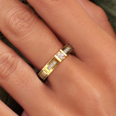You can choose the combination of precious metals of your preference in our online tool. Anything goes! It is wise to browse through the characteristics of each different precious metal. For example, gold and silver are softer metals. Carat is determined by the amount of added extra metals. If the goldsmith doesn't add a lot, carat is higher and the wedding ring will be softer. If he adds more metals, the jewel has a lower amount of carat. A softer precious metal can still be used for your modern wedding ring! If you prefer a precious metal which will last a lifetime, we recommend platinum. This is the most solid and durable metal our goldsmith uses.