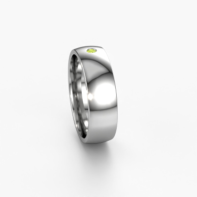 To create your ladies wedding ring in our artisan studio, we use the most modern techniques, combined with ancient craftsmanship. The end result is this modern WH0101L26AP wedding ring, which is crafted to perfection by hand by our goldsmiths. A ring that fills us with pride. This white gold WH0101L26AP ladies wedding ring with court profile has an ±0.24 in width and has a shiny finish with peridot. Simply customize your gemstones and colours with our online tool. Our jewel designers will make a 3D drawing of your design, so you can see the result. Our goldsmiths will subsequently make your wedding ring by hand, according ancient craftsmanship. Our goal is to make the wedding ring you have in mind. A unique wedding ring to match your style completely!Do you have special preferences regarding your wedding ring? For instance, a smaller or a wider band? Or perhaps a shiny or a matte ring? There are numerous variations possible. You can always discuss the possibilities with our jewellery designers. If you have certain wedding rings in mind, our designers will gladly help by drawing the rings of your dreams. Be sure to contact us!Because we design and deliver our own wedding rings, we can offer you wedding rings at a price you won't find anywhere else. A ring is made to order, which helps prevent excess supplies, so we can make you a great price offer.To make it easier for you, we offer a 30 day return policy. Check our terms and conditions.