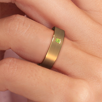 This modern ladies wedding ring is a stunning, contemporary wedding ring which truly symbolizes your unique love! Perfectly suited for men with a contemporary style. Simply customize the ring to your liking. Our goldsmith would take on any challenge of creating a perfect ring and will work on your ring, designed by you, in our own artisan studio. He will carefully and passionately create your WH0101L15BMSQ wedding ring by hand whilst using the most modern techniques, combined with pure craftsmanship. And this results in a unique, contemporary ring! This modern WH0101L15BMSQ wedding ring is set with princess peridot, is ±0.20 in wide and has a matte finish. After designing your ring, our jewel designer will start working on it. He will make a graphic 3D design of your wedding ring. This can also be used to make a dummy ring. Simply order a dummy ring and see for yourself how your ring will turn out. Subsequently, our expert goldsmith will create your ring in our own artisan studio. We use eco-friendly gold, so you get a ring, we are proud of, which looks good inside and out. You can also send us your own gold. Because we create your ring by hand, we can use your own gold. Our goal is to create an exquisite sparkling wedding ring just as envisioned it!By the way, you can be inspired by this wedding ring and have it further adjusted to your taste. Do you prefer a smaller band or a wider one? Do you prefer a shiny ring or a matte one? Anything is possible. Also, if you have an idea of your own for extraordinary wedding rings, or if you have seen a beautiful set somewhere else that you really like and would like to have adjusted to your personal taste: no problem! don't hesitate to contact us. Our designers will gladly discuss your possibilities with you!By combining our modern techniques with ancient crafting, we can design and customize the finest quality jewels with the utmost care for you at the best price. Our wedding rings are always priced 30% lower than those of other jewellers. We make wedding rings to order so we don't have to maintain a large stock.To make it easier for you, we offer a 30 day return policy. Check our terms and conditions.