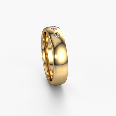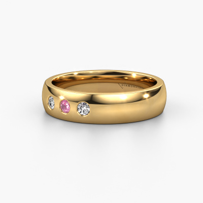 This modern shiny ladies wedding ring with court profile is an extraordinary ring to memorialize your love. A timeless wedding ring set with carefully selected pink sapphire. In this example, the gold WH0114L25BP wedding ring is set with round pink sapphire 2.2 mm. Our goldsmiths use the latest modern techniques, combined with ancient craftsmanship and they will make your ring in our own artisan studio. Resulting in a unique, handmade ±0.20x0.08 in wedding ring, which was created to perfection, and matches your style flawlessly. After designing your ring, our jewel designer will start working on it. He will make a graphic 3D design of your wedding ring. This can also be used to make a dummy ring. Simply order a dummy ring and see for yourself how your ring will turn out. Subsequently, our expert goldsmith will create your ring in our own artisan studio. We use eco-friendly gold, so you get a ring, we are proud of, which looks good inside and out. You can also send us your own gold. Because we create your ring by hand, we can use your own gold. Our goal is to create an exquisite sparkling wedding ring just as envisioned it!Do you have special preferences regarding your wedding ring? For instance, a smaller or a wider band? Or perhaps a shiny or a matte ring? There are numerous variations possible. You can always discuss the possibilities with our jewellery designers. If you have certain wedding rings in mind, our designers will gladly help by drawing the rings of your dreams. Be sure to contact us!After receiving your order, our goldsmiths will start the creative process of making your wedding rings in our own crafting studio. We don't keep stock. This is advantageous because these costs will not be passed on to you. Therefore, we can offer the finest quality jewellery at exceptionally low prices.To make it easier for you, we offer a 30 day return policy. Check our terms and conditions.