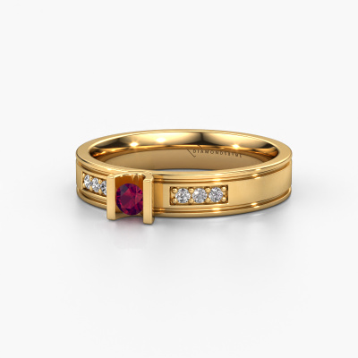 This modern ladies wedding ring is a stunning, contemporary wedding ring which truly symbolizes your unique love! Perfectly suited for men with a contemporary style. Simply customize the ring to your liking. Our goldsmith would take on any challenge of creating a perfect ring and will work on your ring, designed by you, in our own artisan studio. He will carefully and passionately create your WH2108L14A wedding ring by hand whilst using the most modern techniques, combined with pure craftsmanship. And this results in a unique, contemporary ring! This modern WH2108L14A wedding ring is set with round rhodolite, is ±0.16 in wide and has a shiny finish. You can choose the combination of precious metals of your preference in our online tool. Anything goes! It is wise to browse through the characteristics of each different precious metal. For example, gold and silver are softer metals. Carat is determined by the amount of added extra metals. If the goldsmith doesn't add a lot, carat is higher and the wedding ring will be softer. If he adds more metals, the jewel has a lower amount of carat. A softer precious metal can still be used for your modern wedding ring! If you prefer a precious metal which will last a lifetime, we recommend platinum. This is the most solid and durable metal our goldsmith uses.Be inspired by our designs, and adjust this wedding ring to your own personal taste: wider or smaller, shiny or matte? No problem! Even if you have ideas of your own for special wedding rings, our jewellery designers are lined up to help you design the ring of your dreams. don't hesitate to contact us!Because we design and deliver our own wedding rings, we can offer you wedding rings at a price you won't find anywhere else. A ring is made to order, which helps prevent excess supplies, so we can make you a great price offer.To make it easier for you, we offer a 30 day return policy. Check our terms and conditions.
