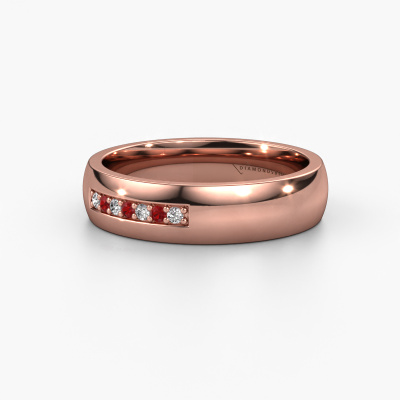 To create your ladies wedding ring in our artisan studio, we use the most modern techniques, combined with ancient craftsmanship. The end result is this modern WH0112L25BP wedding ring, which is crafted to perfection by hand by our goldsmiths. A ring that fills us with pride. This rose gold WH0112L25BP ladies wedding ring with court profile has an ±0.20 in width and has a shiny finish with ruby. After designing your ring, our jewel designer will start working on it. He will make a graphic 3D design of your wedding ring. This can also be used to make a dummy ring. Simply order a dummy ring and see for yourself how your ring will turn out. Subsequently, our expert goldsmith will create your ring in our own artisan studio. We use eco-friendly gold, so you get a ring, we are proud of, which looks good inside and out. You can also send us your own gold. Because we create your ring by hand, we can use your own gold. Our goal is to create an exquisite sparkling wedding ring just as envisioned it!Do you have specific wishes regarding your wedding ring, but are you having difficulties finding the design on our website? The be sure to contact our designers! For instance, we can make the band smaller or wider. Do you prefer a matte finish? We can do that! Engravings are a great way of personalizing your rings, and applicable on most designs. Or, if you have an idea of your own for your extraordinary wedding rings, contact us! Our designers are up for the challenge of designing the ring of your dreams!Because we design our wedding rings ourselves, and deliver it directly to you, we can offer you wedding rings at a price you won't find anywhere else. Our rings are made to order, which helps prevent excess supplies, so we can make you a great price offer.To make it easier for you, we offer a 30 day return policy. Check our terms and conditions.