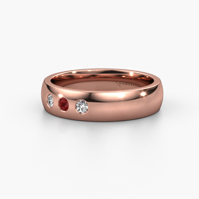 This modern shiny ladies wedding ring with court profile is an extraordinary ring to memorialize your love. A timeless wedding ring set with carefully selected ruby. In this example, the rose gold WH0114L25BP wedding ring is set with round ruby 2.2 mm. Our goldsmiths use the latest modern techniques, combined with ancient craftsmanship and they will make your ring in our own artisan studio. Resulting in a unique, handmade ±0.20x0.08 in wedding ring, which was created to perfection, and matches your style flawlessly. After designing your ring, our jewel designer will start working on it. He will make a graphic 3D design of your wedding ring. This can also be used to make a dummy ring. Simply order a dummy ring and see for yourself how your ring will turn out. Subsequently, our expert goldsmith will create your ring in our own artisan studio. We use eco-friendly gold, so you get a ring, we are proud of, which looks good inside and out. You can also send us your own gold. Because we create your ring by hand, we can use your own gold. Our goal is to create an exquisite sparkling wedding ring just as envisioned it!Do you have special preferences regarding your wedding ring? For instance, a smaller or a wider band? Or perhaps a shiny or a matte ring? There are numerous variations possible. You can always discuss the possibilities with our jewellery designers. If you have certain wedding rings in mind, our designers will gladly help by drawing the rings of your dreams. Be sure to contact us!After receiving your order, our goldsmiths will start the creative process of making your wedding rings in our own crafting studio. We don't keep stock. This is advantageous because these costs will not be passed on to you. Therefore, we can offer the finest quality jewellery at exceptionally low prices.To make it easier for you, we offer a 30 day return policy. Check our terms and conditions.