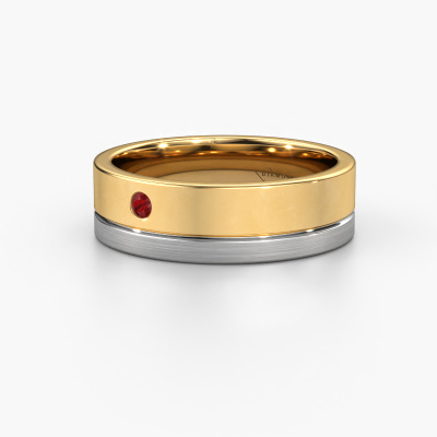 This modern mat/shiny ladies wedding ring with flat profile is an extraordinary ring to memorialize your love. A timeless wedding ring set with carefully selected ruby. In this example, the gold WH0301L16APM wedding ring is set with round ruby 2 mm. Our goldsmiths use the latest modern techniques, combined with ancient craftsmanship and they will make your ring in our own artisan studio. Resulting in a unique, handmade ±0.24x0.07 in wedding ring, which was created to perfection, and matches your style flawlessly.