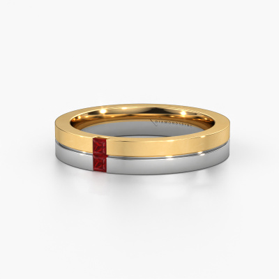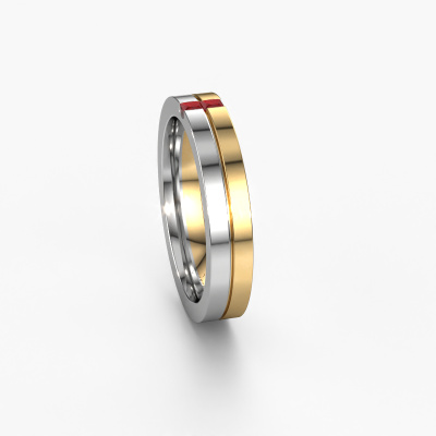 To create your ladies wedding ring in our artisan studio, we use the most modern techniques, combined with ancient craftsmanship. The end result is this modern WH0225L14B wedding ring, which is crafted to perfection by hand by our goldsmiths. A ring that fills us with pride. This gold WH0225L14B ladies wedding ring with flat profile has an ±0.16 in width and has a shiny finish with ruby. You can choose the combination of precious metals of your preference in our online tool. Anything goes! It is wise to browse through the characteristics of each different precious metal. For example, gold and silver are softer metals. Carat is determined by the amount of added extra metals. If the goldsmith doesn't add a lot, carat is higher and the wedding ring will be softer. If he adds more metals, the jewel has a lower amount of carat. A softer precious metal can still be used for your modern wedding ring! If you prefer a precious metal which will last a lifetime, we recommend platinum. This is the most solid and durable metal our goldsmith uses.Do you have specific wishes? Like a shiny ring, or a matte one? A wider band, or a smaller one? The possibilities of this wedding ring are endless. Be sure to contact our designers to adjust your ring to your personal taste. Did you see a ring somewhere, or do you have some special ideas of your own? Then don't hesitate to contact our designers and discuss your ideas for your own set of beautiful wedding rings. We are up for the challenge of creating the ring exactly the way you want it!By combining our modern techniques with ancient crafting, we can design and customize the finest quality jewels with the utmost care for you at the best price. Our wedding rings are always priced 30% lower than those of other jewellers. We make wedding rings to order so we don't have to maintain a large stock.To make it easier for you, we offer a 30 day return policy. Check our terms and conditions.